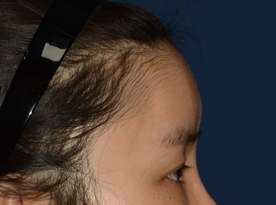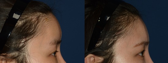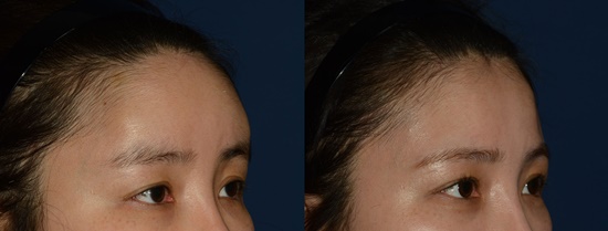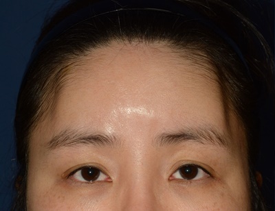 수술 후 이마의 굴곡이 보이는데 이 부분은 추후 지방이식으로 교정이 가능합니다.