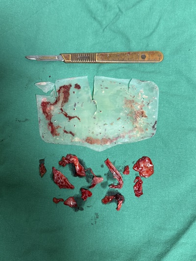 주사기로 이 조직액을 제거하고 항생제 치료하면서 경과를 보는데,