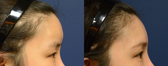 보형물 들어가는 이마의 연부조직이 얇은 편이라