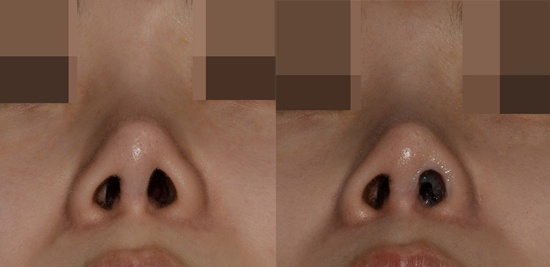 심한 콧구멍 짝짝이 - 비공내리기 수술로 비대칭 교정하기
